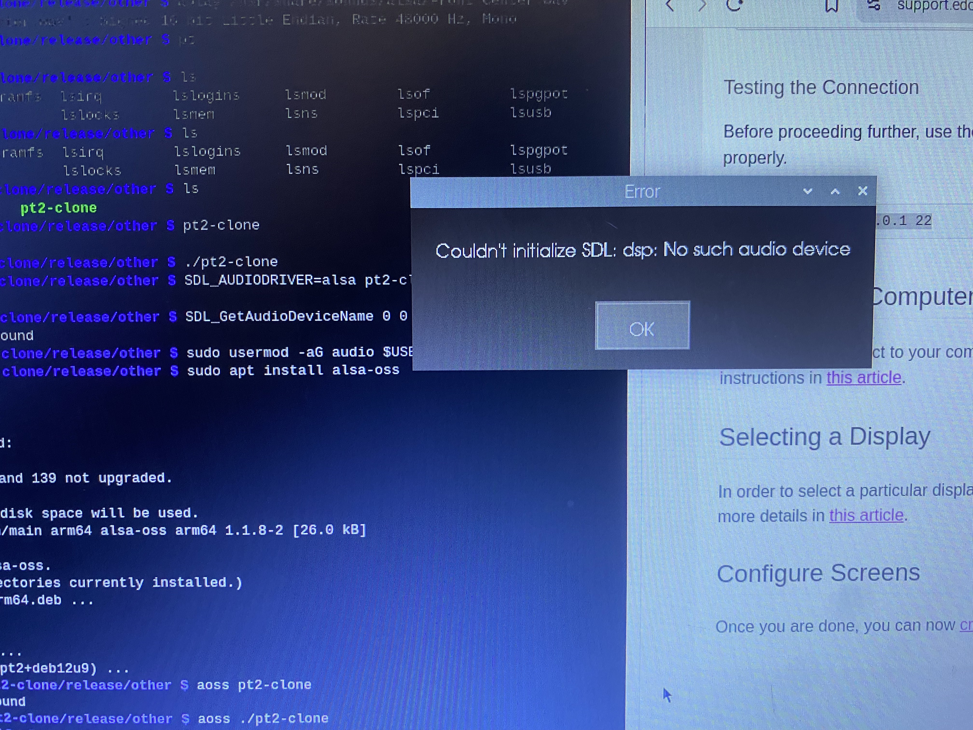 we have the pi running now. only it does not recognise sdl DSP audio, i think the built in audio driver in raspberrypi os is shitty.